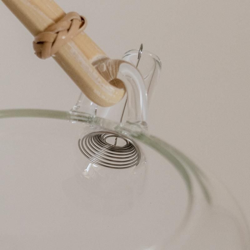 - 手作業で制作しているため、大きさや形状に個体差がございます。一点一点、風合いが異なりますので、写真と実際の商品に違いが出る場合がございます。本体に小さな傷や気泡があることもございます。また、持ち手は天然素材のため状態に個体差がございます。あらかじめご了承ください。