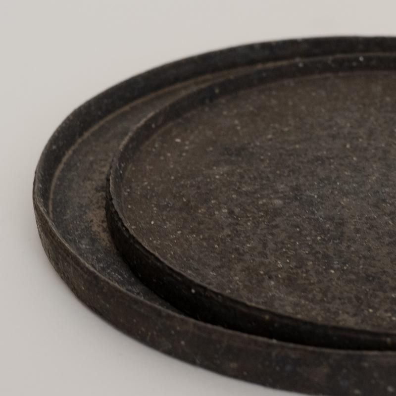 「土の静謐な素材感、それが保てる寸前の形を表すこと。薄く簡潔な造形に多義を込めて、その僅かでも持つ人の琴線に触れ、穏やかな緊張感を伴った静かな対峙ができればと日々励んでおります」