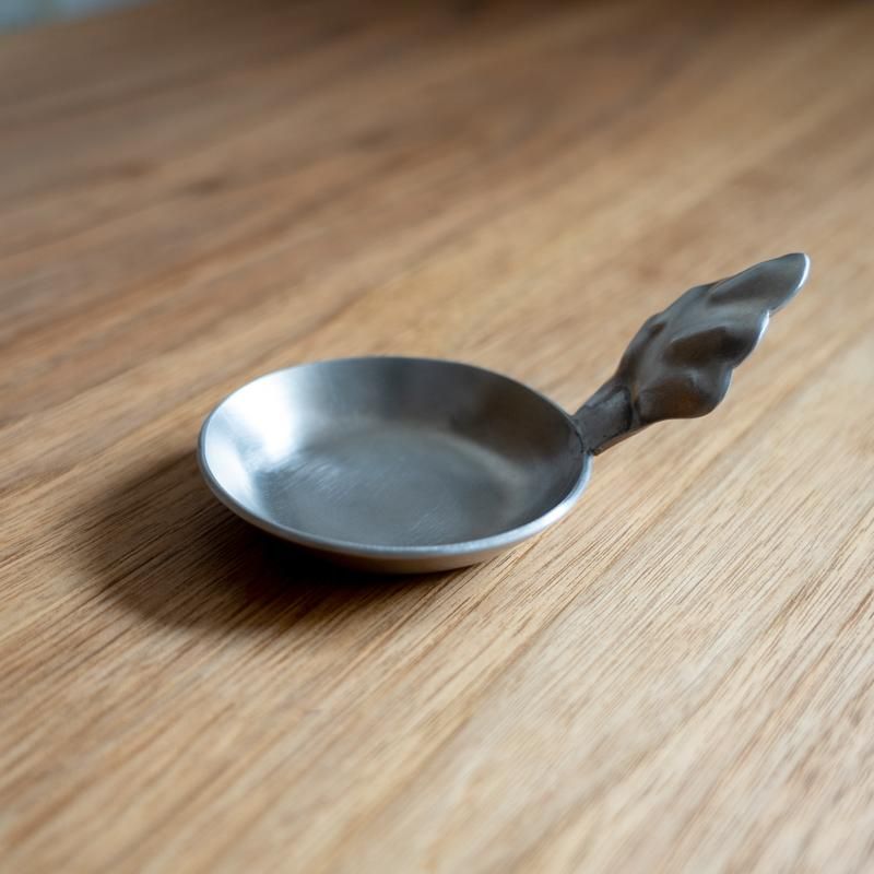 羽のような持ち手のデザインが印象的なアルミのプレート。