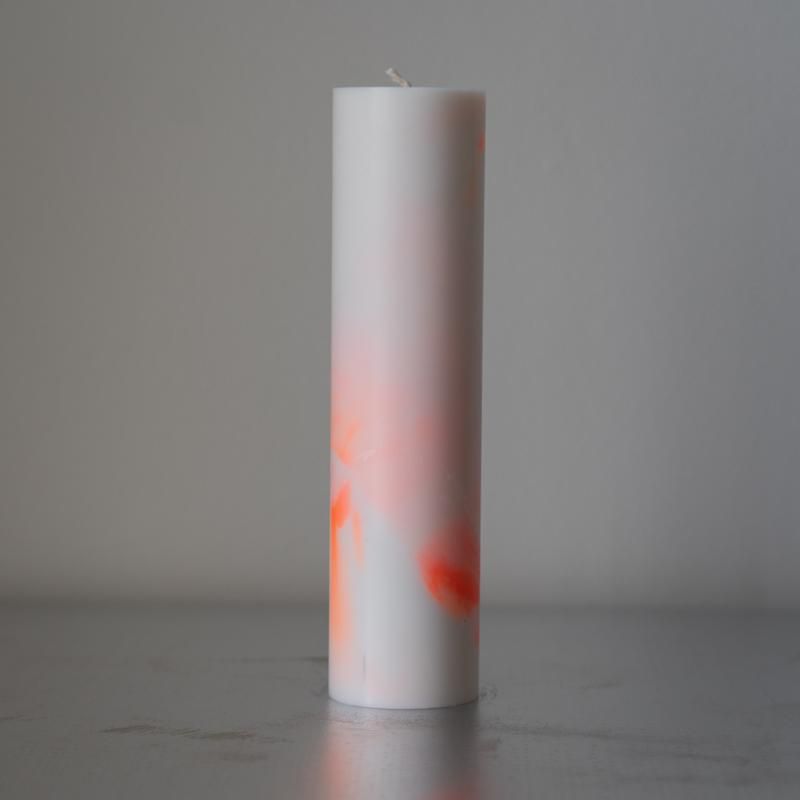 火を消すまでの時間や風の向きなどによって、溶け落ちる様子が異なるため、移りゆく時の流れを記憶するかのように、それぞれに異なる表情を作り出していきます。