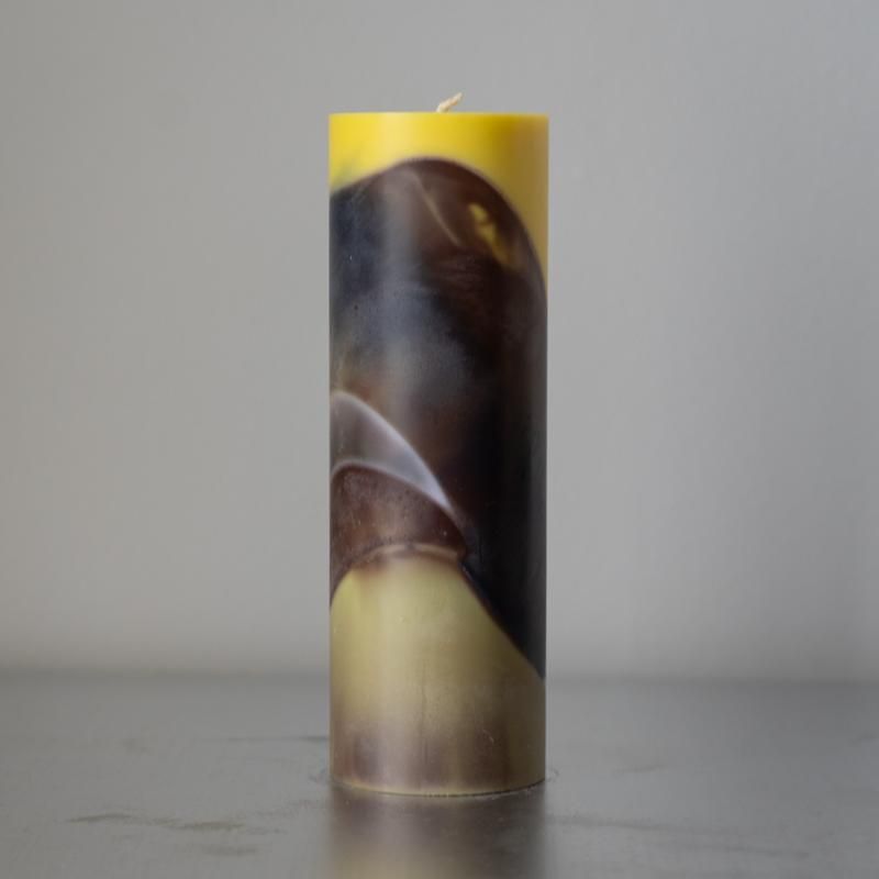 火を消すまでの時間や風の向きなどによって、溶け落ちる様子が異なるため、移りゆく時の流れを記憶するかのように、それぞれに異なる表情を作り出していきます。