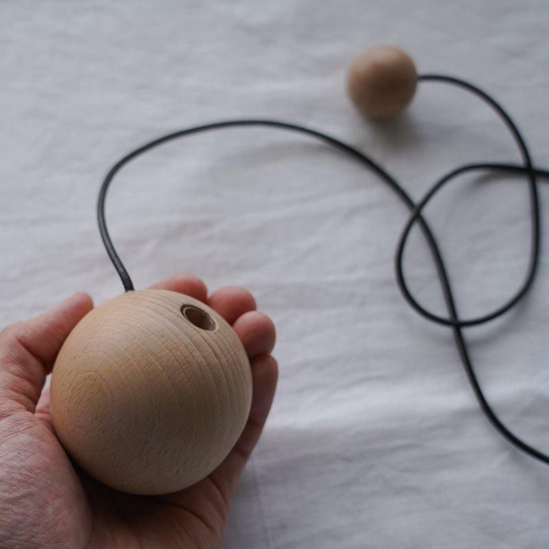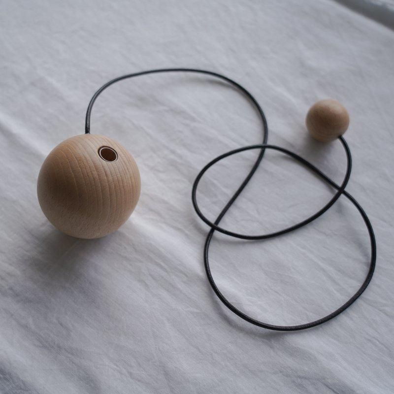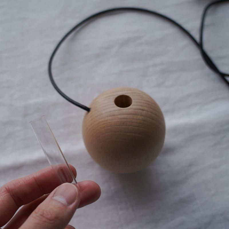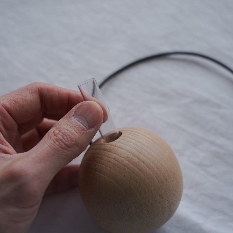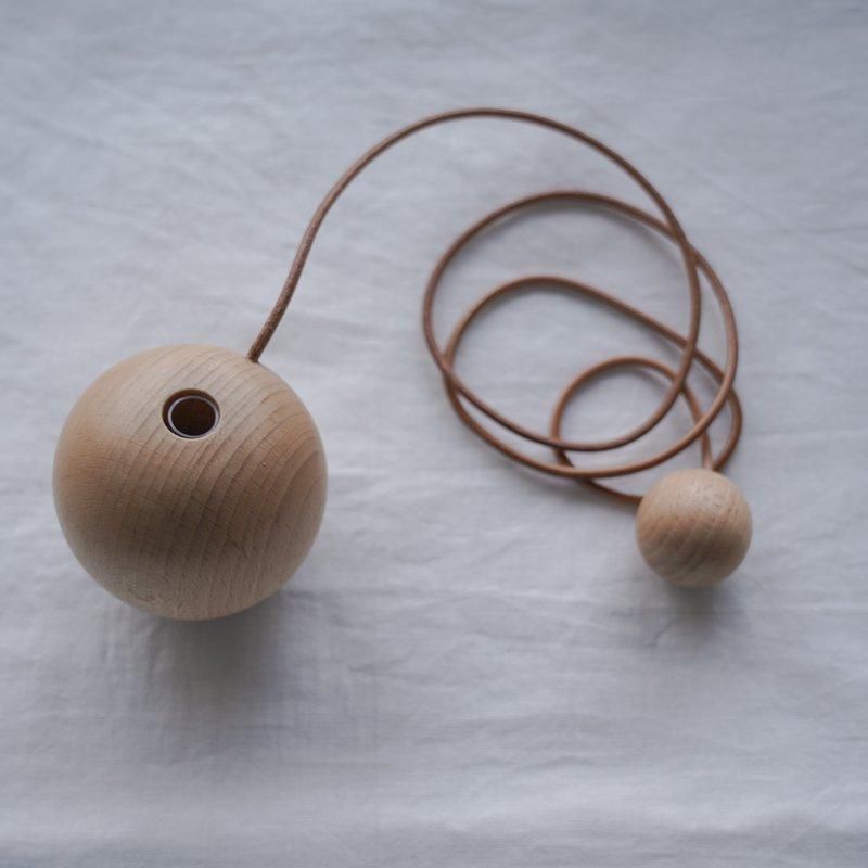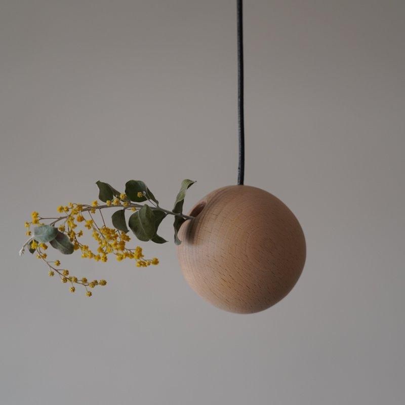 木工旋盤の技術を活かして、綺麗な木目のブナ材を球体に削り出した一輪挿し。