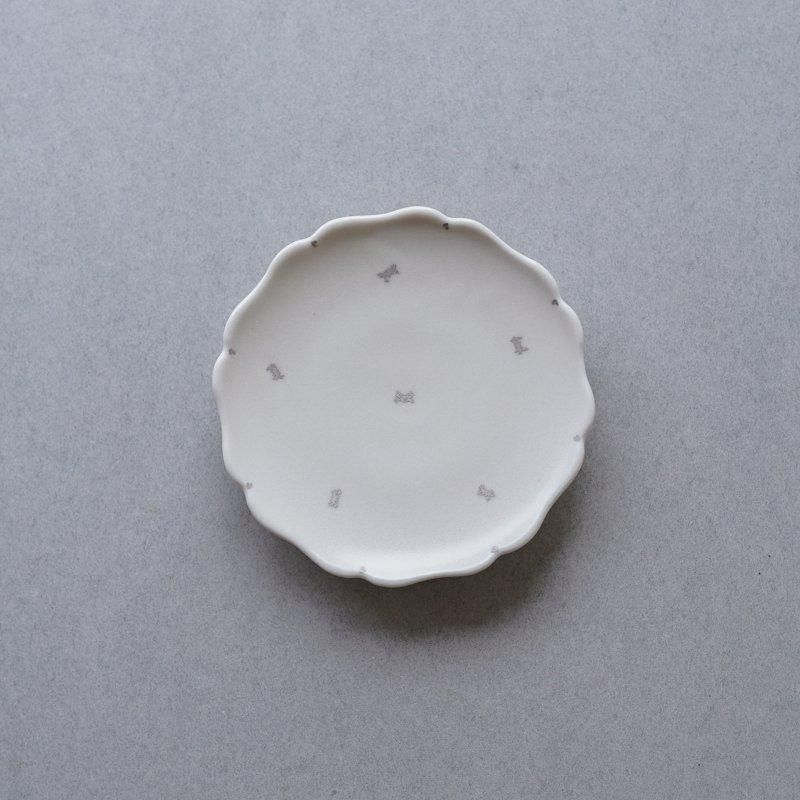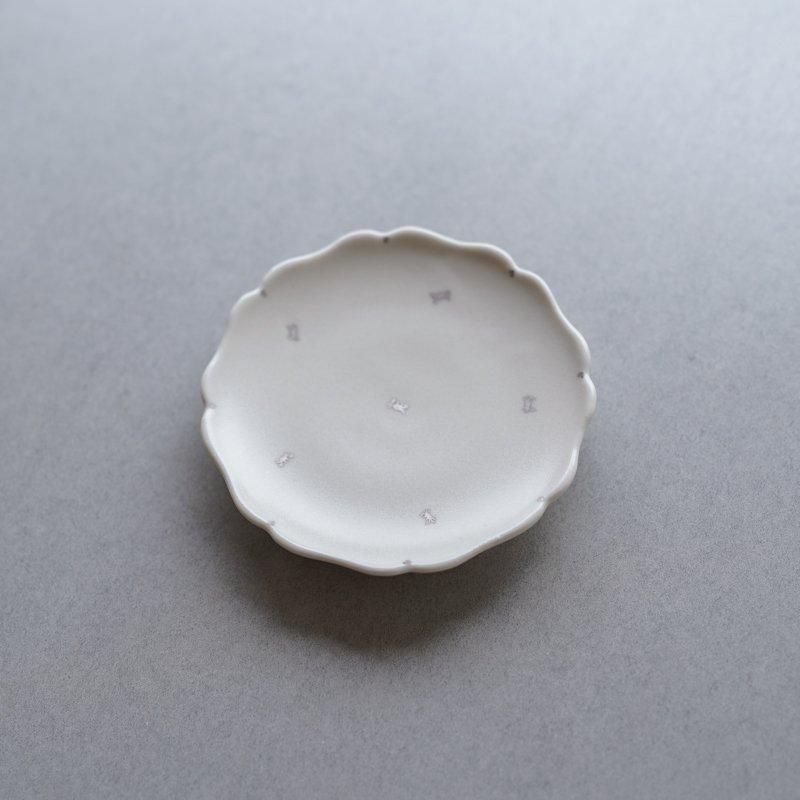 銀彩で小さな蟹が描かれた豆皿。銀彩の繊細な絵付けと乳白色の余白との組み合わせが素敵です。
