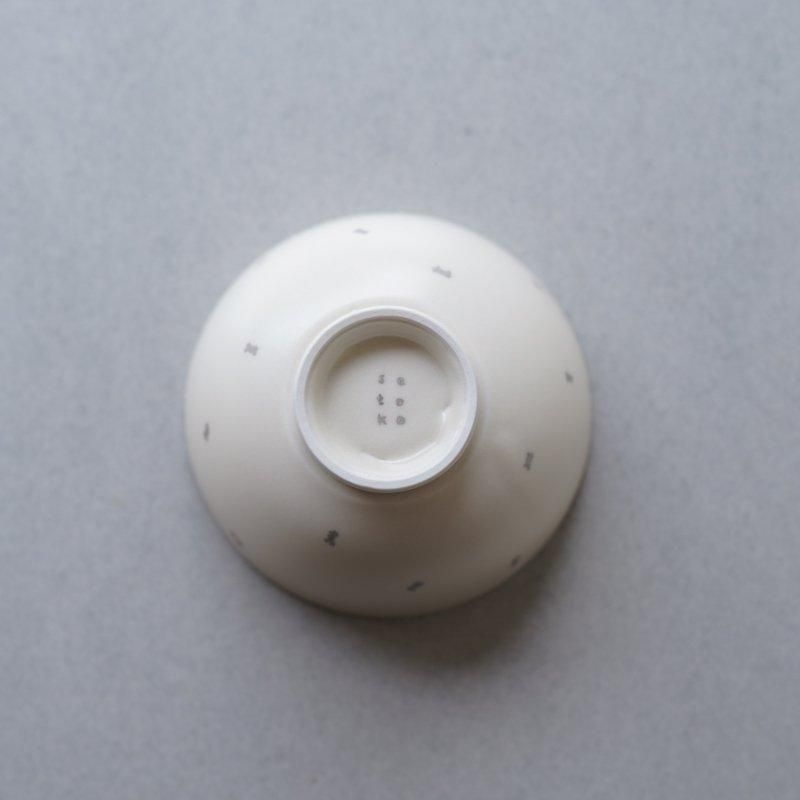 銀彩で小さな蟹が描かれたご飯茶碗。銀彩の繊細な絵付けと乳白色の余白との組み合わせが素敵です。