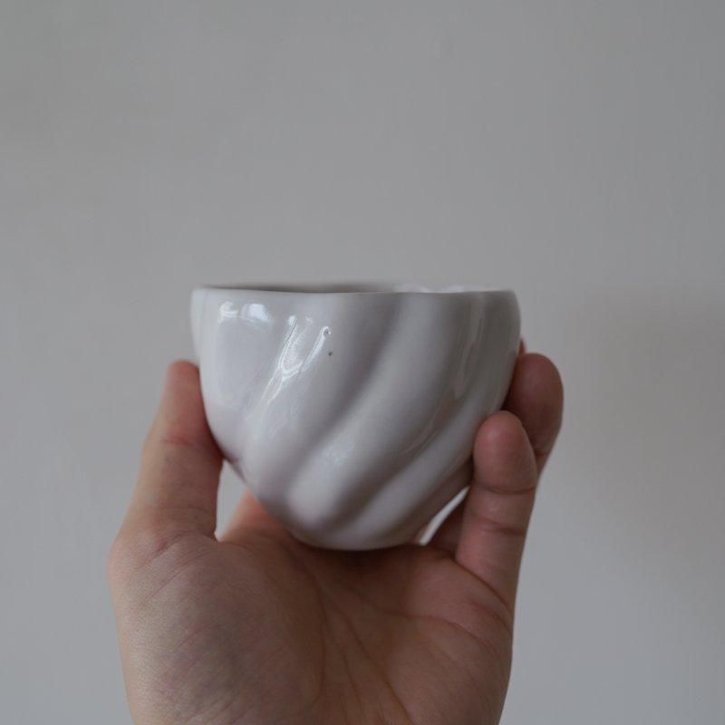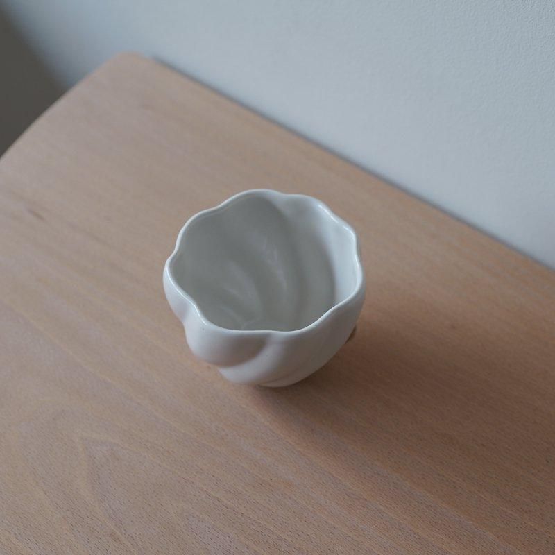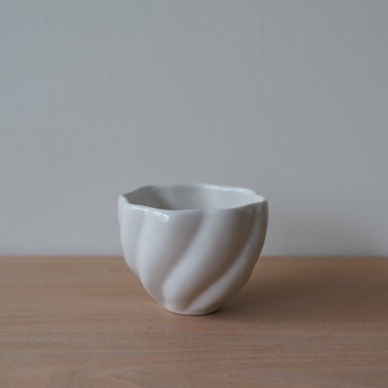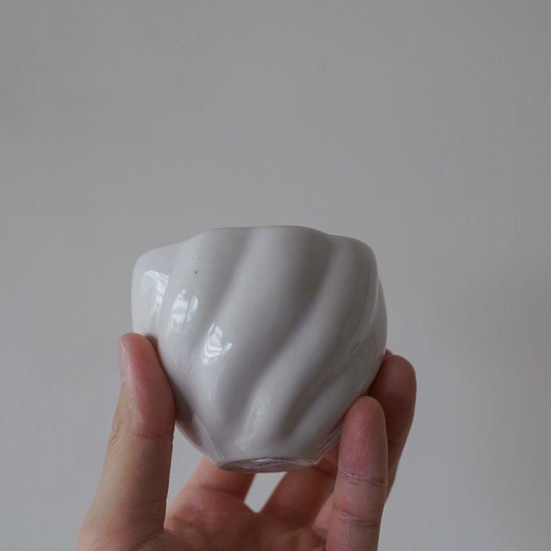 たわみのあるフォルムと柔らかいニュアンスのある白の釉薬が、アンテイークのような佇まい。古いものや伝統へのリスペクトと今を生きる作家の感性が、上手に融合しています。静かな個性が感じられる作品です。