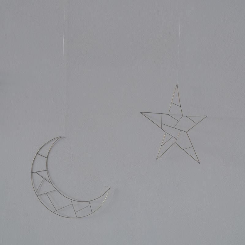 こちらの作品は、モビールとしてセットになっています。天井から吊るしたり壁に掛けてお楽しみいただけます。