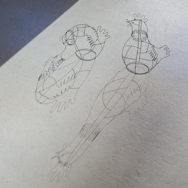 「らくがき」シリーズは、スケッチブックに走り書きしたようなラフな線でモチーフを形にしています。
