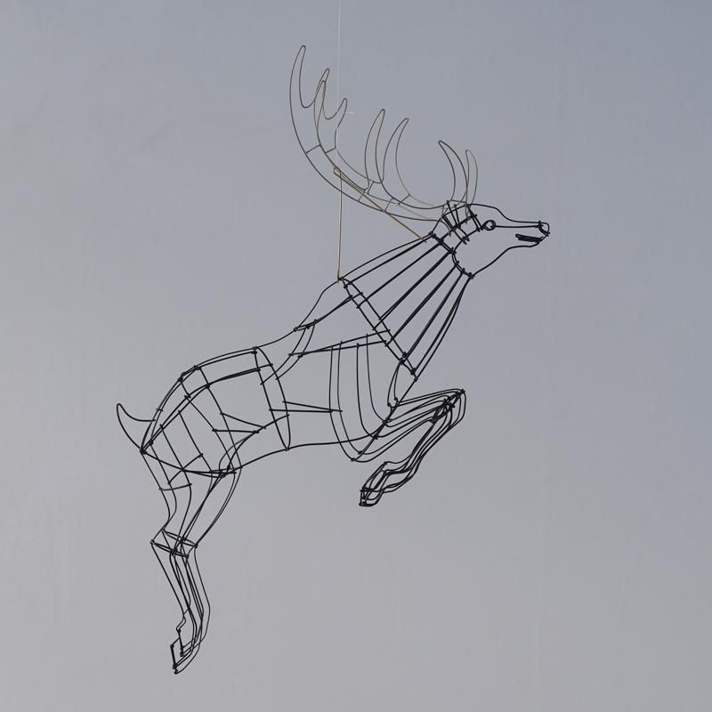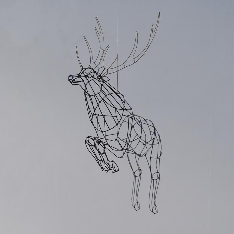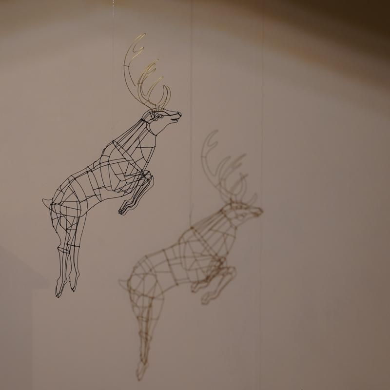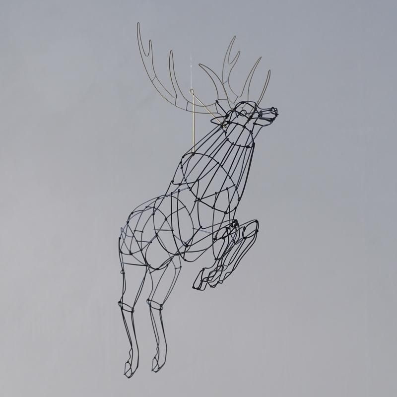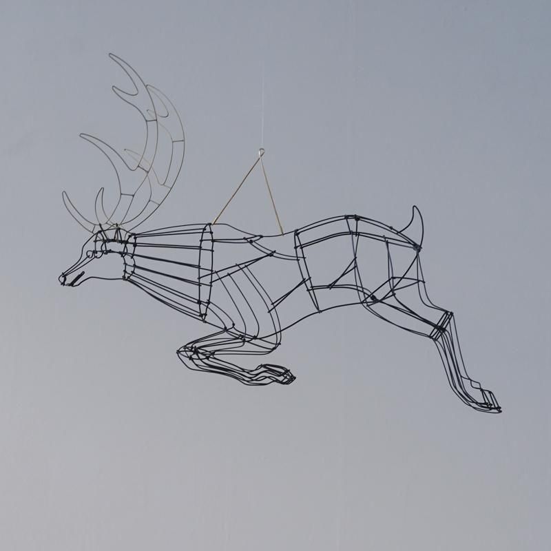 大鹿が宙を駆ける瞬間を描いた躍動感あふれる姿。山田さんの代名詞的な作品の一つとして、開店当初から紹介させていただいています。